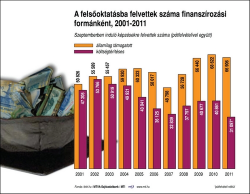 2011 szeptemberében teljes összegű állami támogatással alapképzésben, osztatlan és felsőfokú szakképzésben 53 ezer 450 elsőéves hallgató kezdhette el tanulmányát, míg mesterképzésre 19 ezer 600 hallgató léphetett be.