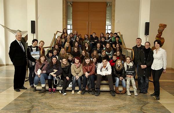 Képünkön, Siegfried Kepler (bal oldalon) és a NémetH László Gimnázium diákjai idén márciusban az Ulmi Városházán.