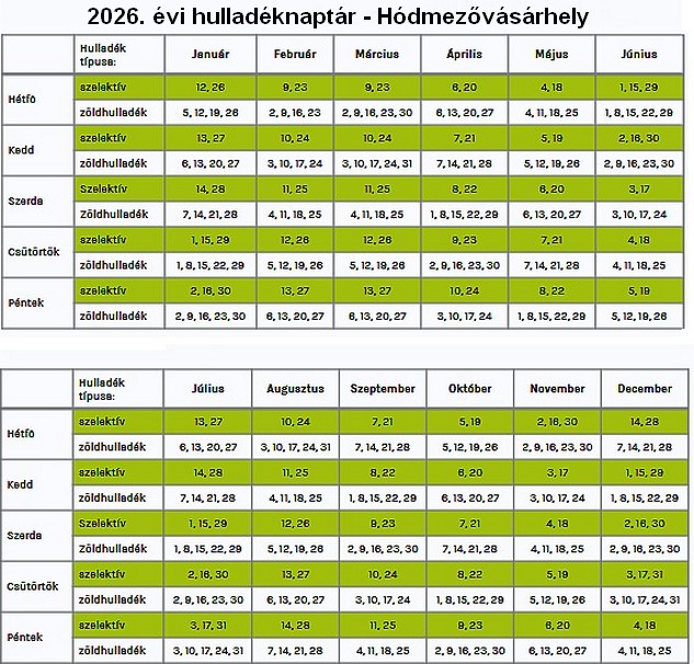 Továbbra is havi két alkalommal van szelektív hulladék elszállítás és havi 4, vagy 5 alkalolmmal van a zöldhulladék elszállítása.